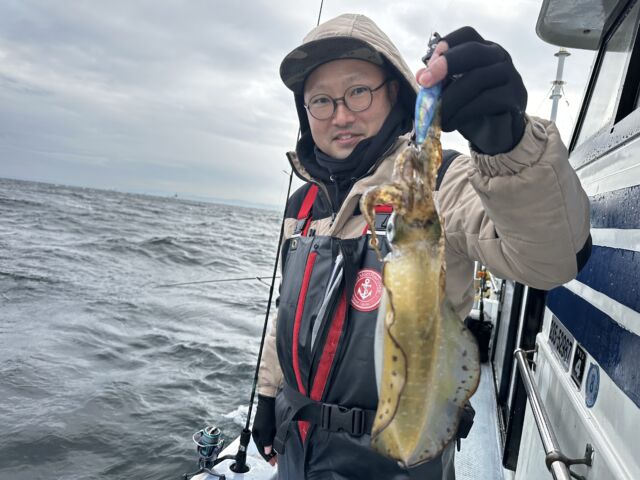 4時40分出船。航程20分の那珂湊沖30-35mで餌木(3)豊島区の牛場久美子★1万1000円▽18澄
