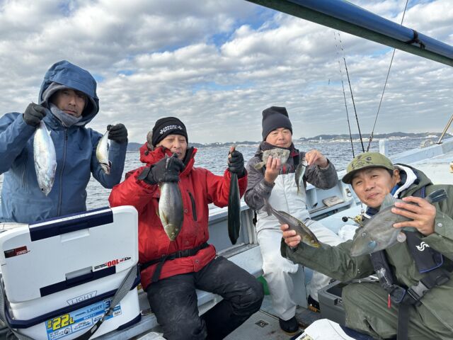 腰越沖60-75m。イトヨリも0-5匹。LT五目船ハナダイ0-3匹とアジ0-8匹、アマダイも