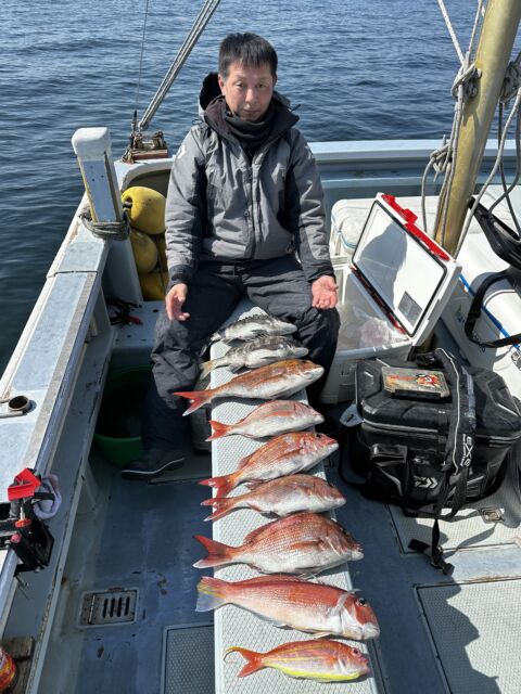 全船小坪沖を攻める。アマダイ船五目釣りでシロアマダイも狙う。カイワリ仕立で五目◆ルアー青物も出