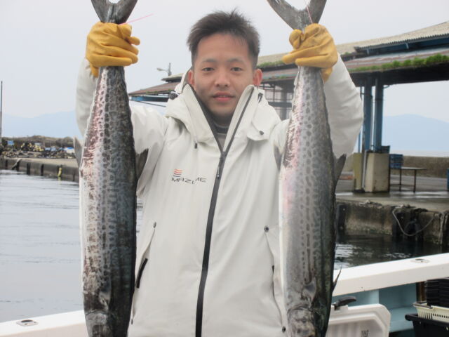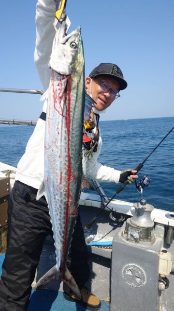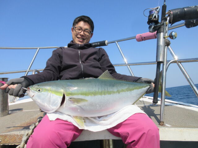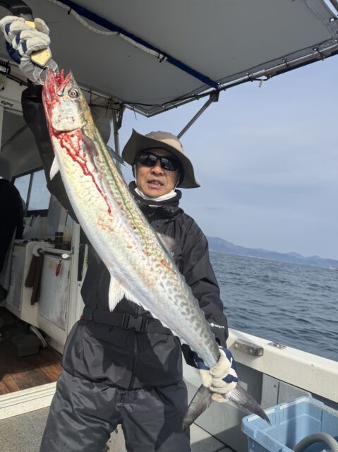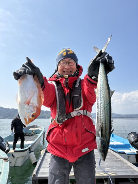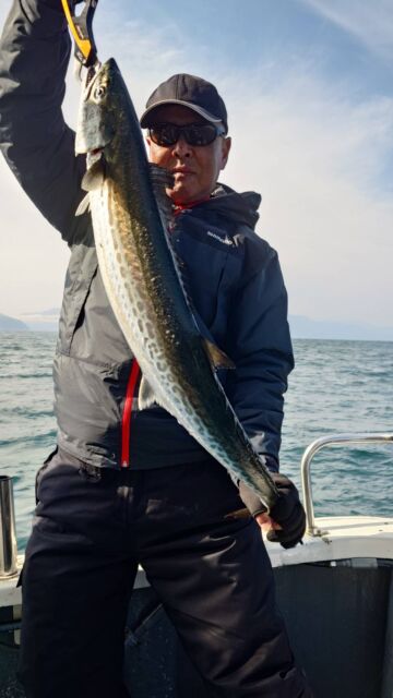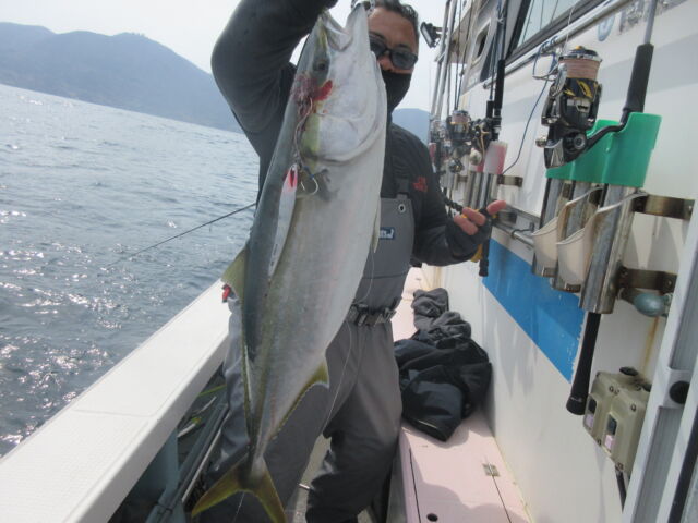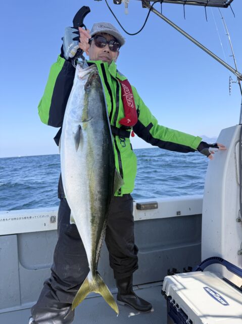 小山氏が長島湾内の船外機ボートでエギング。PE0.6、エギ3~3.5